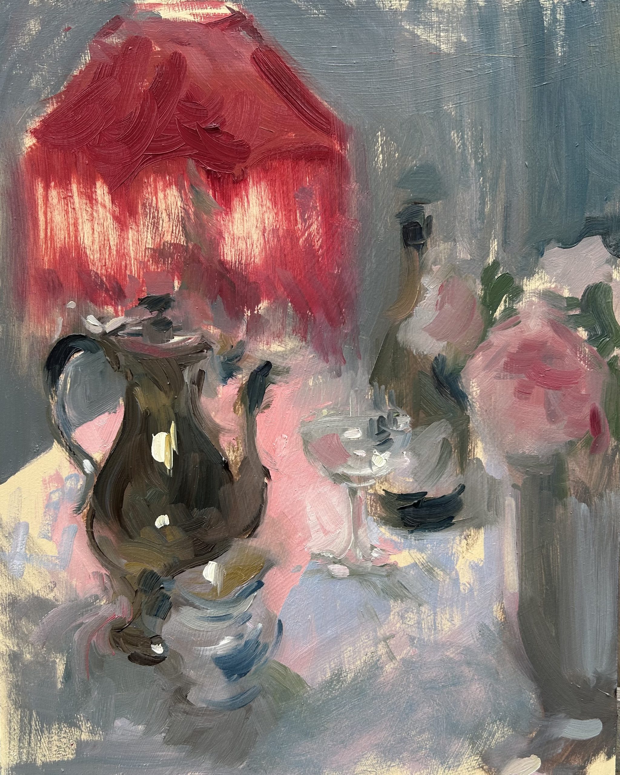 Champagne and tea£450.00 Oil on panel 30 x 24cm unframed 1 in stock Champagne and tea quantity Add to basket Categories: Still Life, Strada Easel Paintings 2026 Related products Milk jug study Read more Jugs and Apples, Autumn sold• Read more Roses and Milk Jug £450.00 Add to basket Roses in Vase in Evening Light £450.00 Add to basket