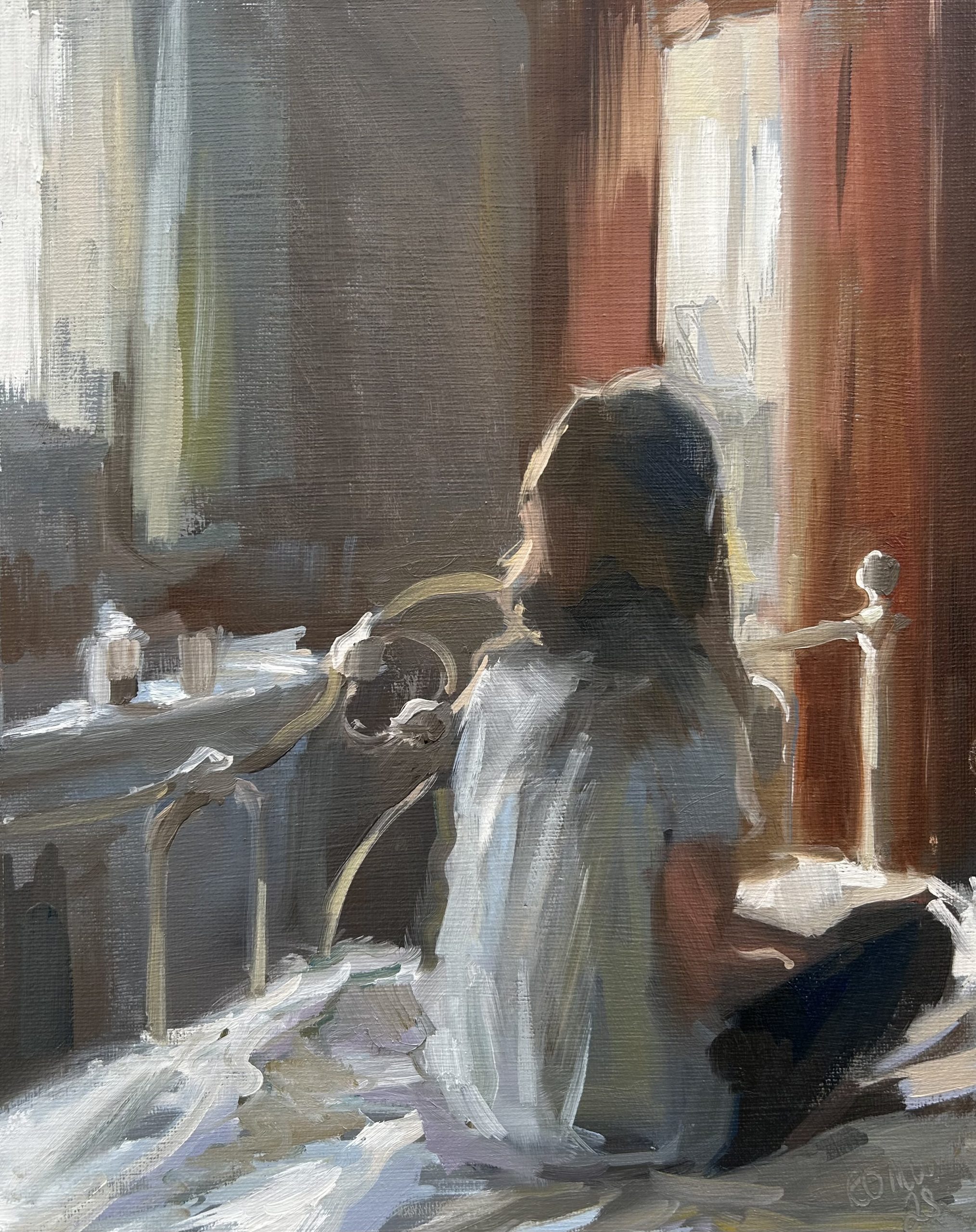 End of the Bed£850.00 Oil on Panel 30 x 24cm Unframed 1 in stock End of the Bed quantity Add to basket Category: Childhood Related products Girl on the beach with Parasol £700.00 Add to basket Growing up No.2 £500.00 Add to basket Playing with the Nutcracker £850.00 Add to basket Trying on pointe shoes £850.00 Add to basket