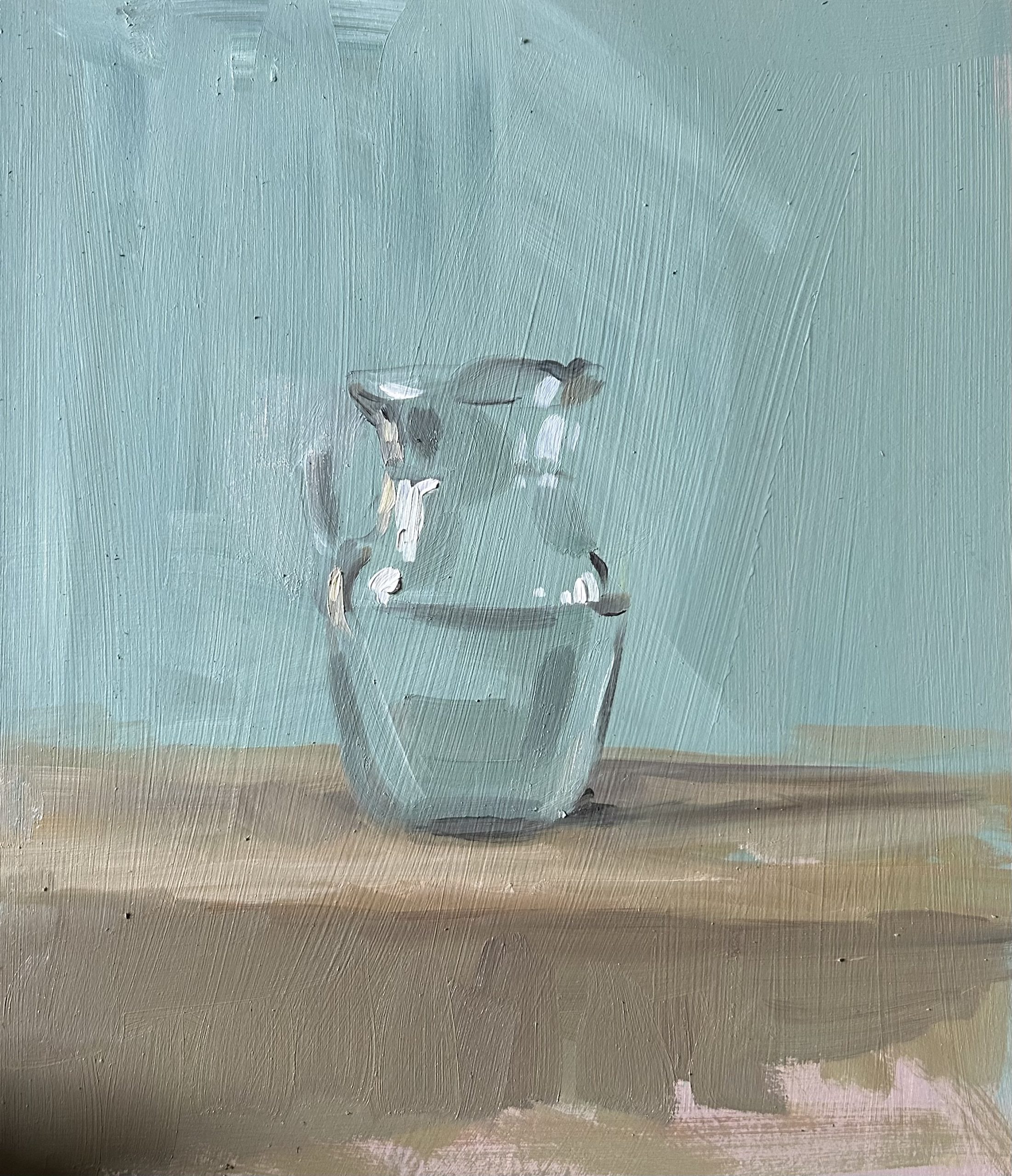 Little Glass Jug. sketch£250.00 Oil on Panel 30 x 24cm Unframed 1 in stock Little Glass Jug. sketch quantity Add to basket Category: £250 and under Related products White Boat at Sunset, Burnham Overy Staithe, sketch £250.00 Add to basket Mid Morning Hay Bales £250.00 Add to basket Sun and Shadow, Mdina £250.00 Add to basket Roses on the desk, sketch £250.00 Add to basket
