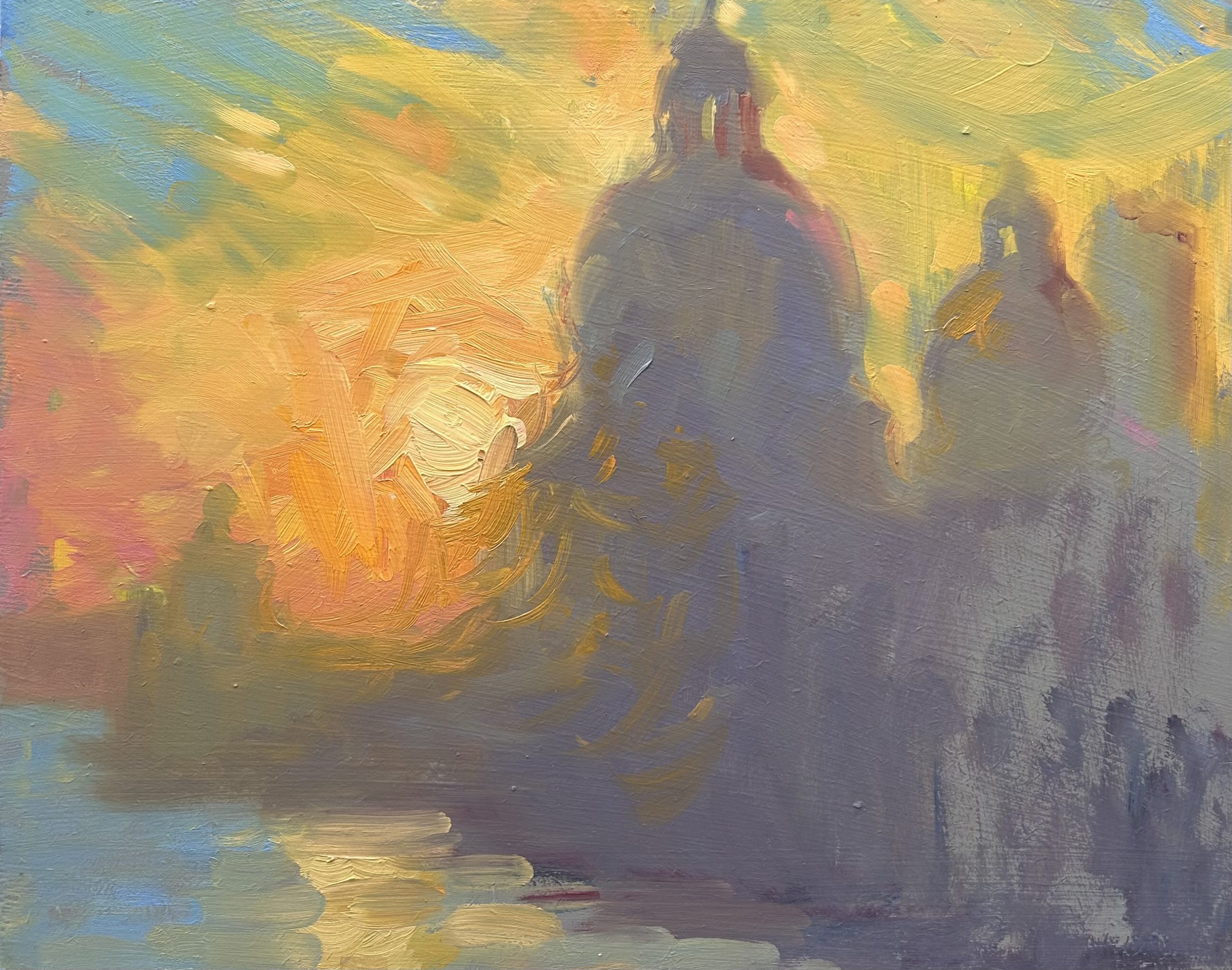 Sunrise, Santa Maria Della Salute£500.00 Oil on Panel 24 x 30cm Unframed (Framing available, please contact rachelwrightartist@gmail.com for advice and a quote) 1 in stock Sunrise, Santa Maria Della Salute quantity Add to basket Category: Venetian Light Related products The Doge’s Palace from San GiorgioAvailable through Cricket Fine Art• £800.00 Read more Monet’s Landing, Late AfternoonSOLD• Read more Santa Maria Della Salute, Contre Jour £500.00 Add to basket Turquoise Water on the Grand Canal £500.00 Add to basket