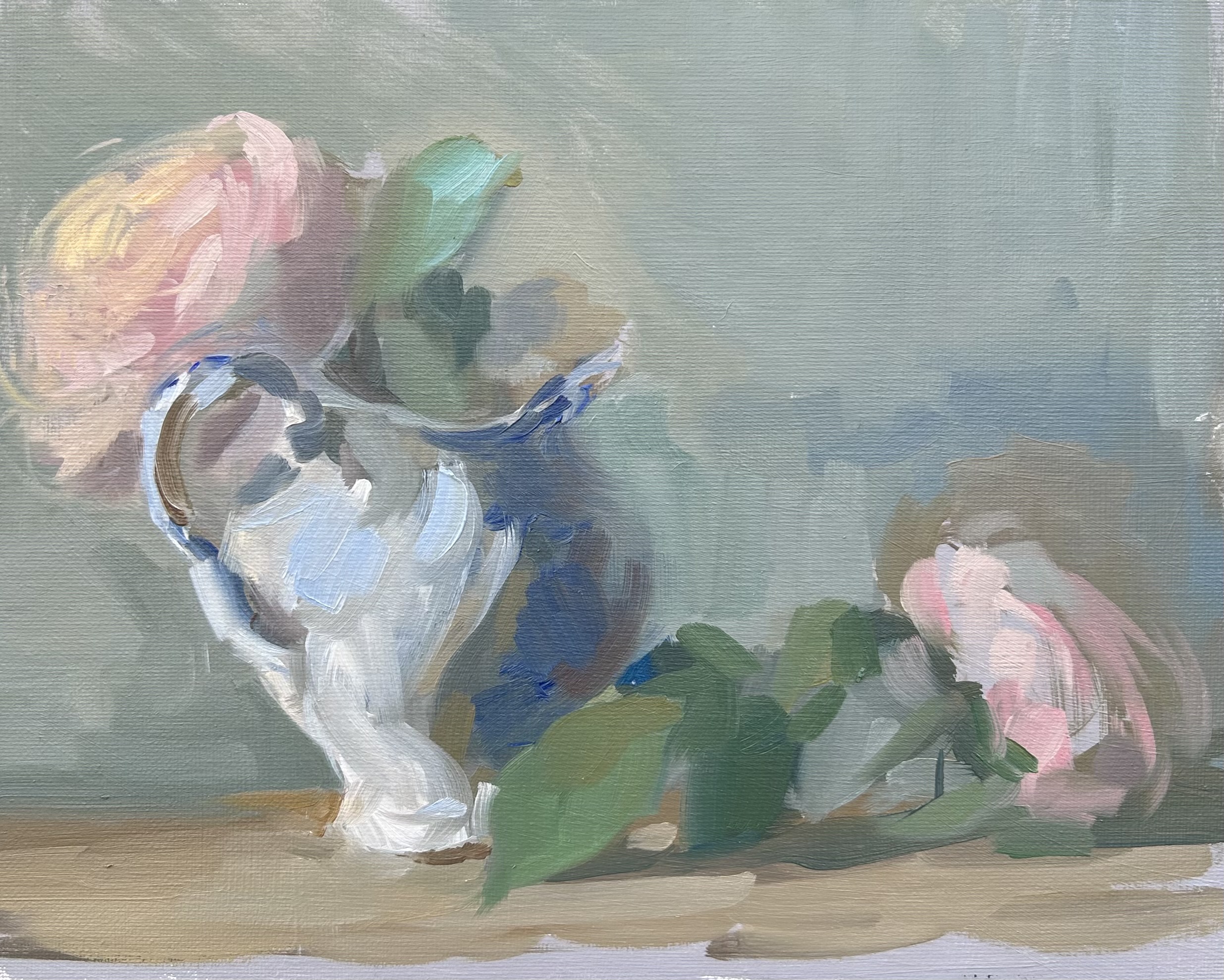 Roses and Milk Jug Oil on Panel 24 x 30cm Unframed For pricing please enquire at rachelwrightartist@gmail.com Categories: Still Life, Strada Easel Paintings 2026 Related products Little House behind the Hawthorne Read more Breakfast with Roses £700.00 Add to basket Dahlias and Lobster £500.00 Add to basket Sunset over Hillside Read more