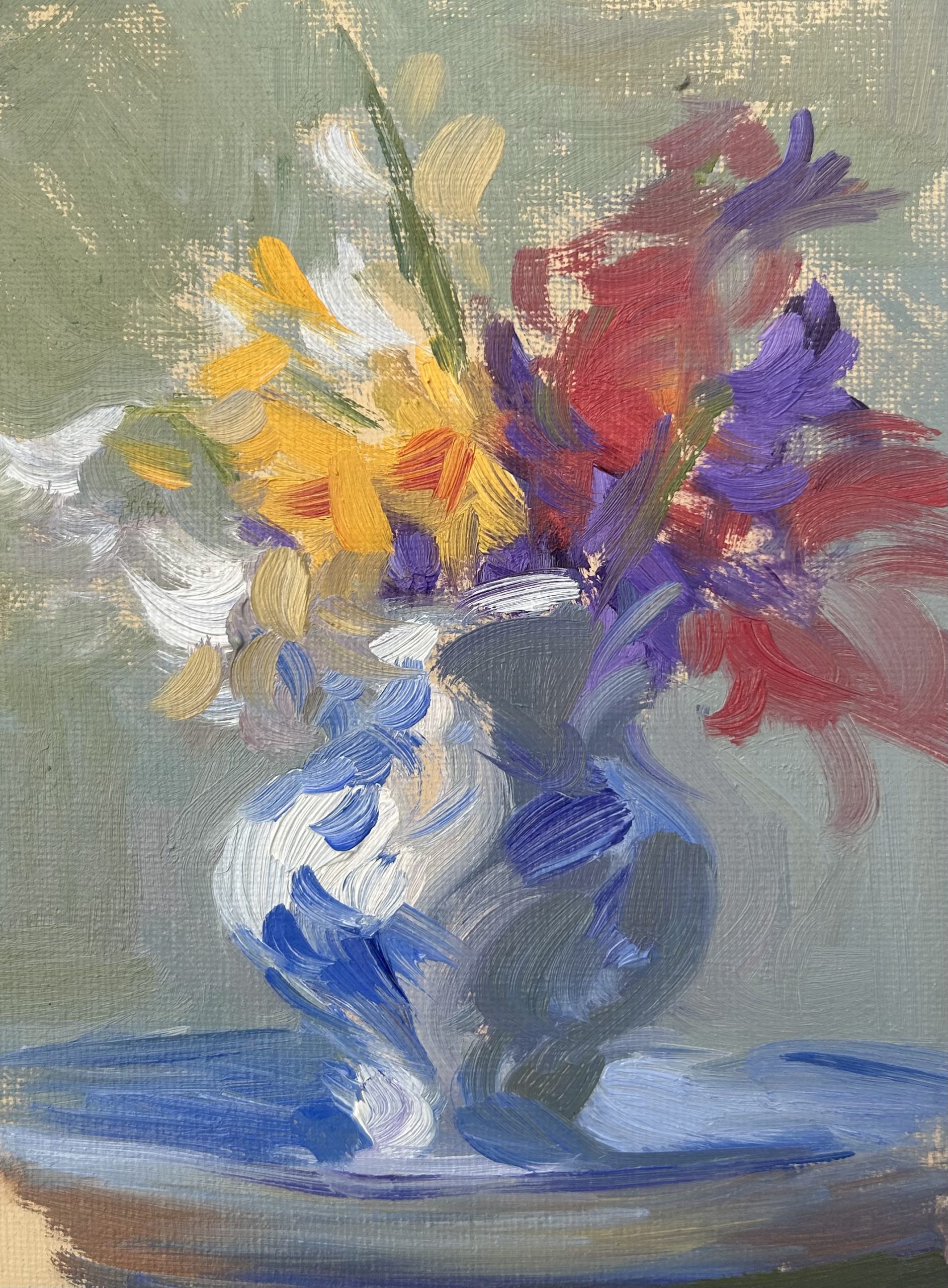 Spring Blooms in Milk Jug (oil sketch)£100.00 Oil on Canvas Panel 18 x 12cm Unframed 1 in stock Spring Blooms in Milk Jug (oil sketch) quantity Add to basket Categories: Mini Paintings, Sketches in Oil, Spring Moods Related products Mid Morning Hay Bales £250.00 Add to basket Blustery clouds, Dunkerton (oil sketch) £350.00 Add to basket Wisteria in Bloom, Bath (oil sketch) £300.00 Add to basket Blue Boat Study, Bristol Harbour £200.00 Add to basket