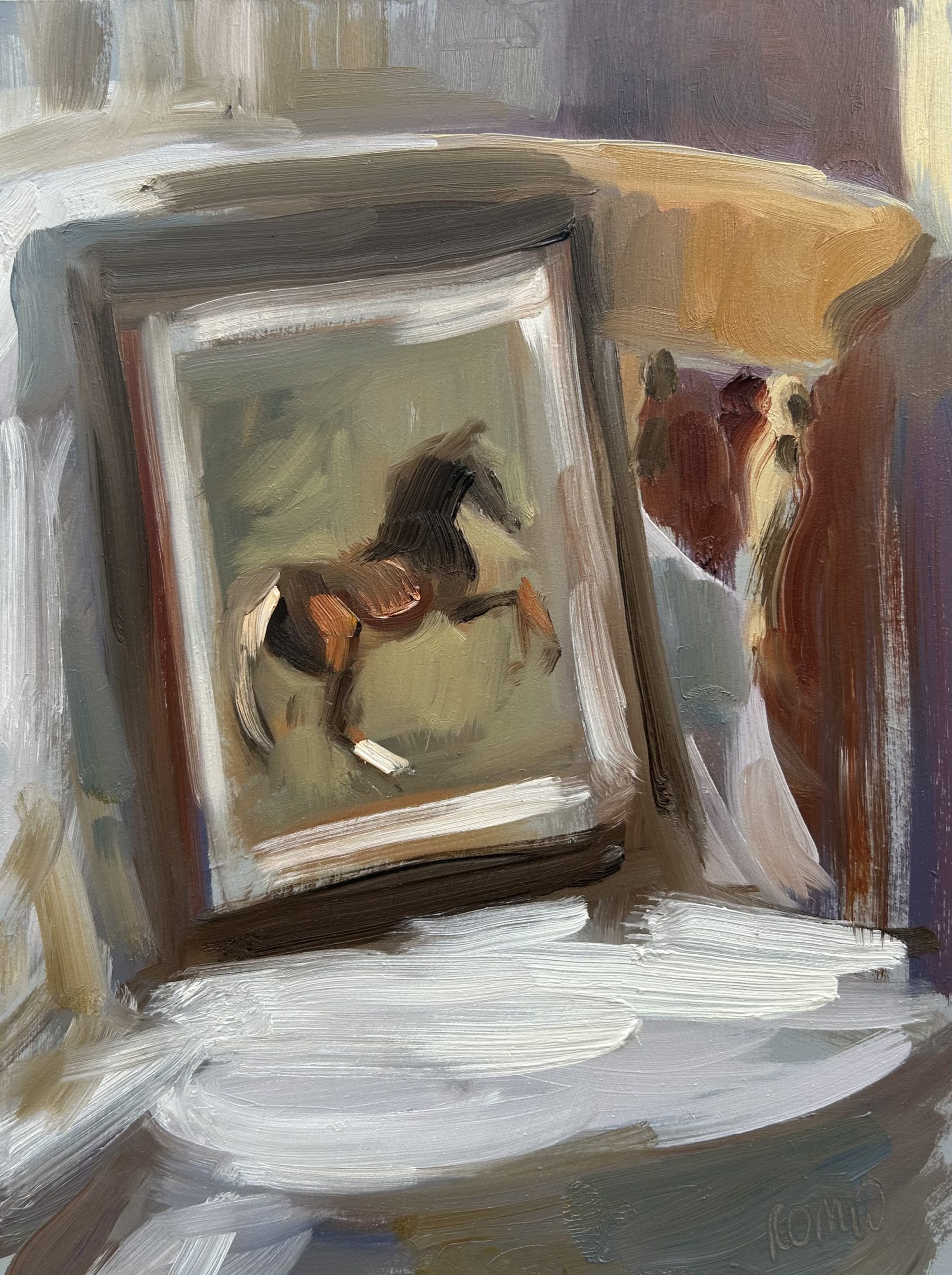 Stubbs ‘Whistlejacket’ on chair (sketch)£200.00 Oil on panel 24 x 18cm unframed 1 in stock Stubbs 'Whistlejacket' on chair (sketch) quantity Add to basket Category: Latest Works Related products Silver Jug £350.00 Add to basket Late Night Bollinger £450.00 Add to basket Chrysanthemums on Chair (sketch) £200.00 Add to basket Oranges on Blue and White China Server £425.00 Add to basket