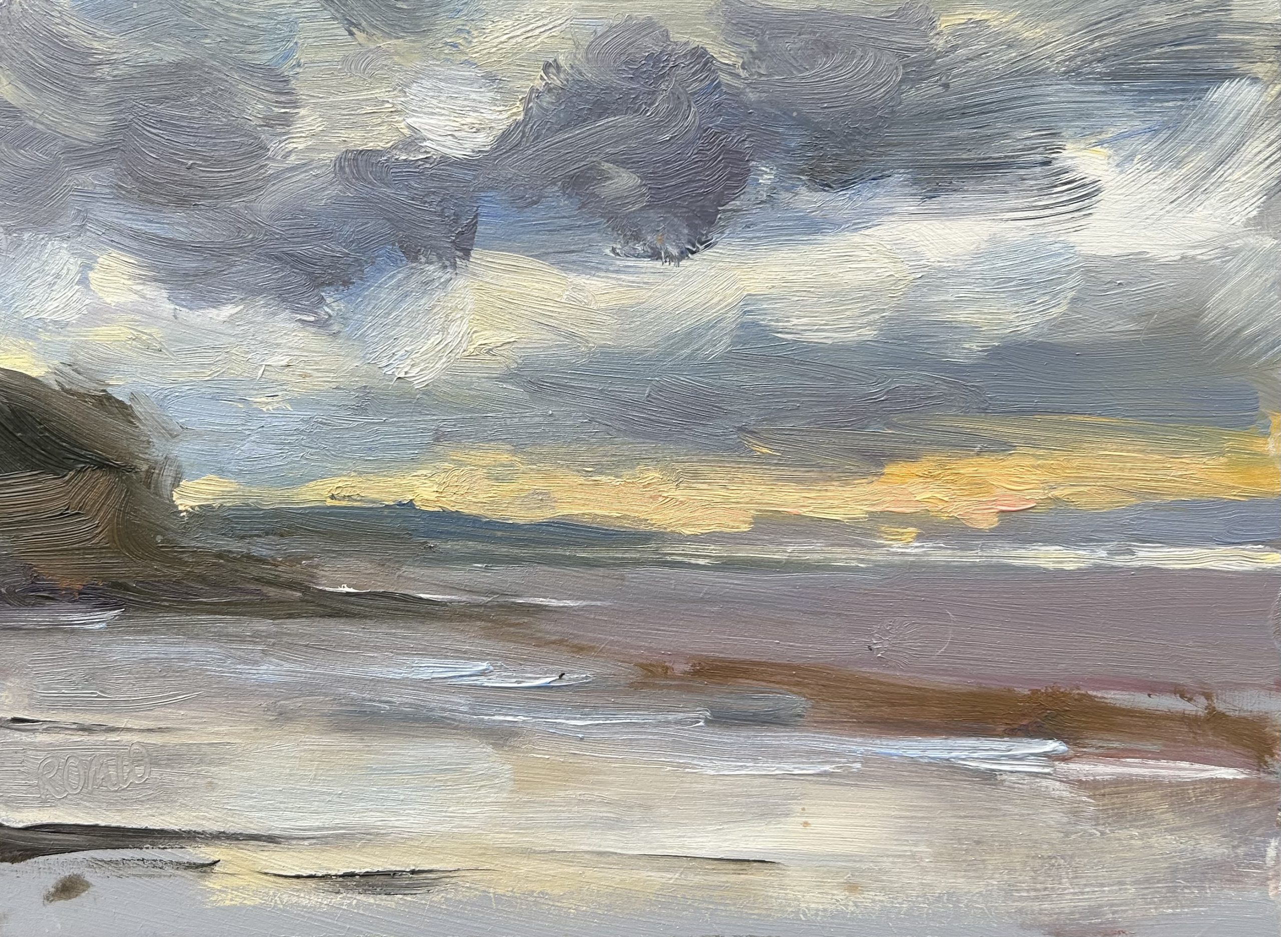 Sunset at Clevedon (oil sketch)£200.00 oil sketch on panel 18 x 24cm unframed framing available please enquire at rachelwrightartist@gmail.com 1 in stock Sunset at Clevedon (oil sketch) quantity Add to basket Category: Spring Moods Related products Clevedon Pier Early Light £550.00 Add to basket Beach Boy (oil sketch) £250.00 Add to basket Spring Blooms by the Royal Crescent £800.00 Add to basket Girl in Purple Dress Paddling £700.00 Add to basket