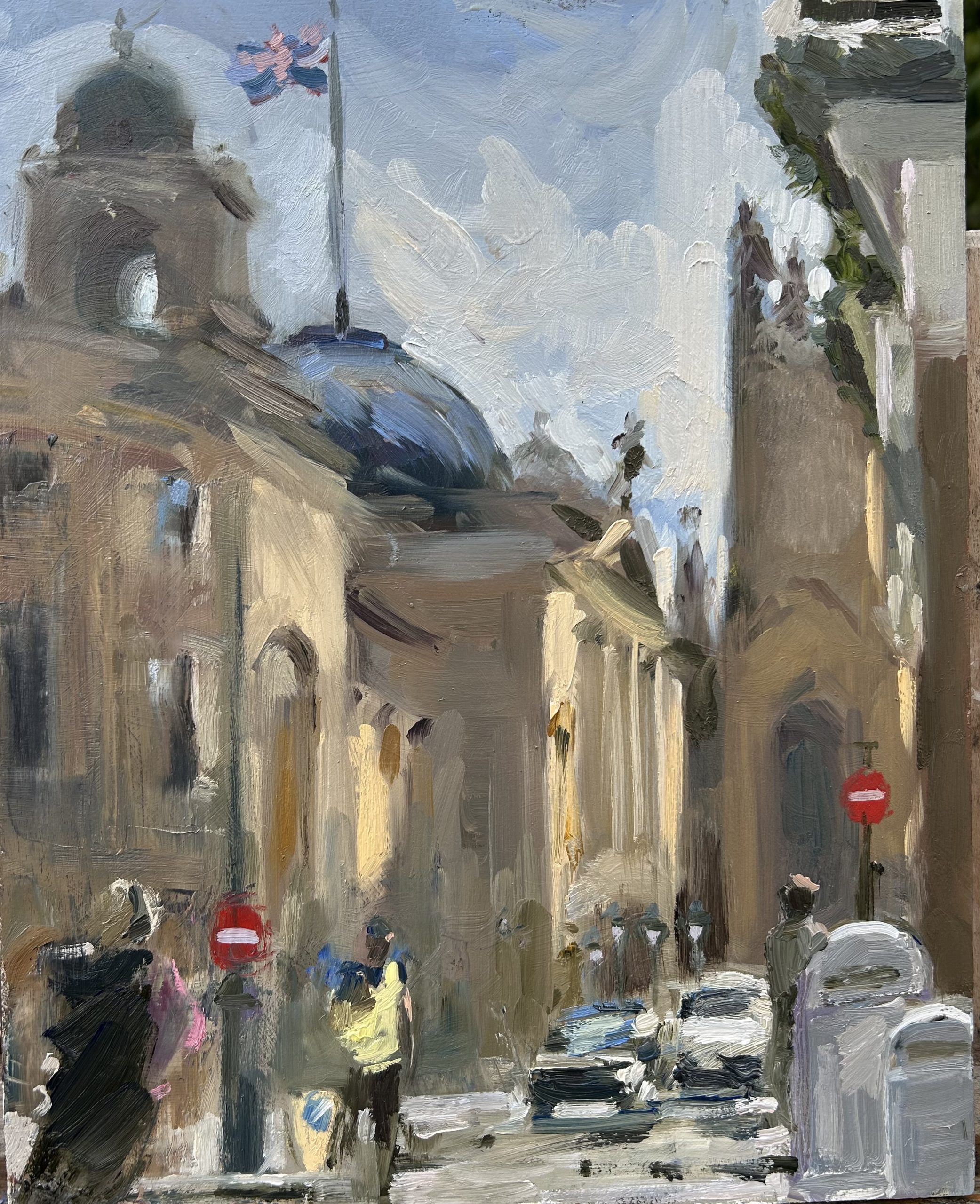 View of the Abbey, mid September£650.00 Oil on canvas panel 30 x 24cm unframed Out of stock Category: Bath Related products Morning, The Canal at Sydney Gardens £300.00 Add to basket The Pump Rooms, Bath £450.00 Add to basket Bath Abbey at Christmas 2019SOLD • Read more The Circus, March Morningsold• Read more